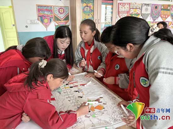 安徽财经大学第27届研究生支教团在新疆生产建设兵团第十四师皮山农场中学举办“皖疆共绘·同心筑梦”跨地域美育交流活动。研支团成员指导学生进行绘画创作。安徽财经大学研支团供图