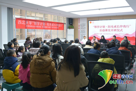 西北大学研支团联合陕西省富平县城关街道渭运社区举办“邻学计划·阳光成长伴我行”公益课堂开班仪式。西北大学研支团供图