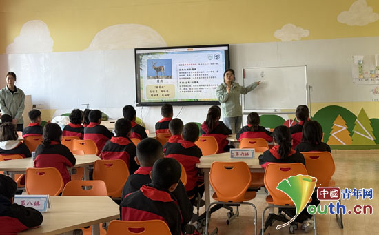 活动伊始,刘佳茵重点介绍了我国特有珍稀鹿科物种——麋鹿的相关知识。她详细讲解了麋鹿“角似鹿非鹿、脸似马非马、蹄似牛非牛、尾似驴非驴”的独特外形特征,以及其生态价值和保护现状。她结合《神农本草经》中对麋鹿角的记载,讲解了其在医药方面的基础理念与应用,让学生在了解珍稀动物的同时,感受中华传统医学之美。