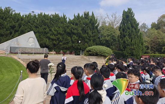 江西省共青城市耀邦红军小学师生代表在耀邦陵园举行“缅怀革命先辈 赓续红色血脉”主题祭扫活动。东北大学研支团供图