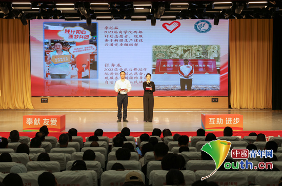 开幕式上,学校优秀毕业生,扎根新疆就业志愿者于树龙、服务期满再就业志愿者成艺、服务新疆的西部计划志愿者张奔龙与李芯茹、山东省乡村振兴计划在岗服务志愿者赵方怡,以及第28届研究生支教团志愿者代表初文扬、彭秀清、王海祎等,以“西部青年说”的形式分享基层服务经历与成长感悟,用真实故事传递青春力量、诠释责任与担当。