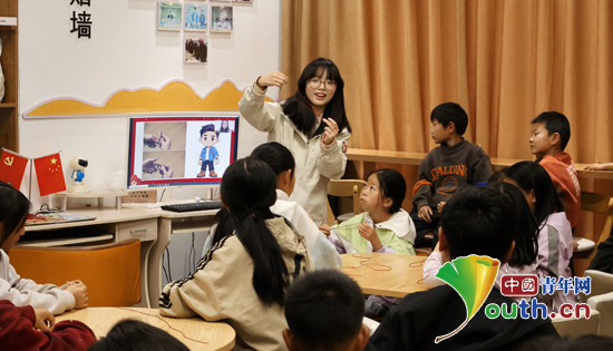 在七彩课堂上,徐丝宇指导孩子们做手工。徐丝宇供图