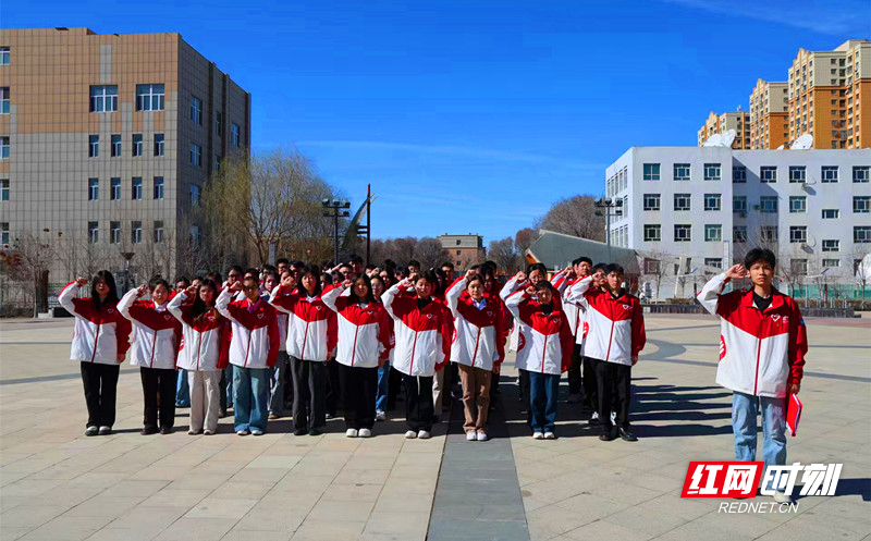 新疆生产建设兵团第九师白杨市西部计划志愿者清明节赴龙珍公园开展缅怀先烈活动,钟啟烨带领志愿者重温誓词。