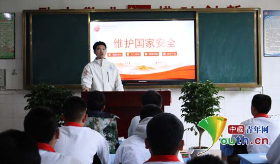 东北大学研支团成员在云南省昌宁县职业技术学校向学生讲解国家安全知识。东北大学研支团供图