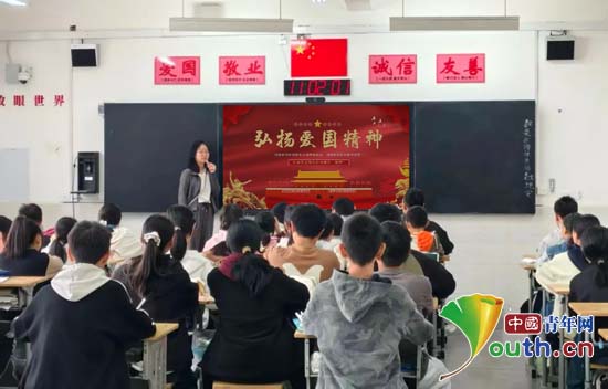 研支团志愿者侯锦雯在陕西省汉中市洋县中学为学生讲解党史。西安建筑科技大学研支团供图