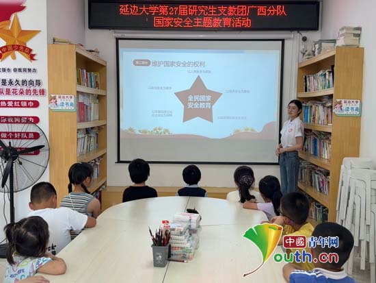 延边大学第27届研究生支教团广西分队在东兰县向阳社区青空间开展“维护国家安全 从你我做起”国家安全教育活动。延边大学研支团供图