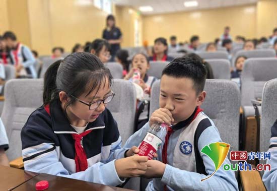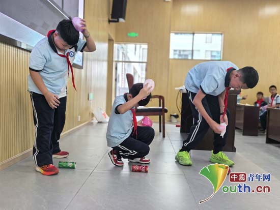 同学们在趣味实验中直观感受大气压的神奇力量。华中科技大学研支团供图
