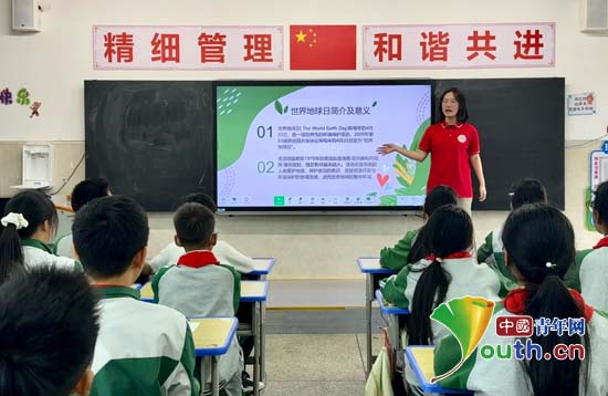 在龙里县第七小学,研支团成员结合图文资料,向孩子们普及地球日的由来、生态环境保护知识,剖析十大环境问题,引导孩子们感知地球的美好与珍贵,建立爱护自然、守护家园的责任意识。