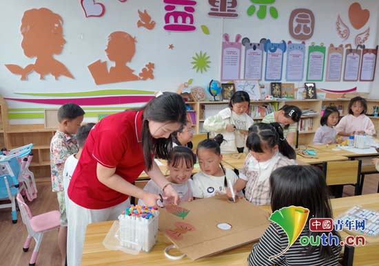 研支团成员指导孩子进行手工制作。东北农业大学研支团供图