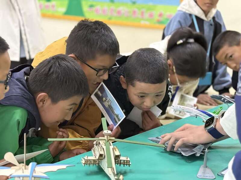 研支团成员在拉萨市堆龙德庆区中学上社团课时,一个叫旦增的藏族男孩举手问:“老师,我们这里海拔这么高,空气这么稀薄,飞机还能飞得起来吗?”这让志愿者下定决心:在离天空最近的西藏,让孩子们的飞天梦触手可及。“高原空气密度低,飞机需要更大的升力面积和更轻的机身。”西藏分队的成员们带着旦增和同学们一起查资料、算数据、调整航模的翼展和重量。两个月后,那架专门为高原“定制”的航模成功飞了30秒,落地时,旦增激动得眼眶发红。