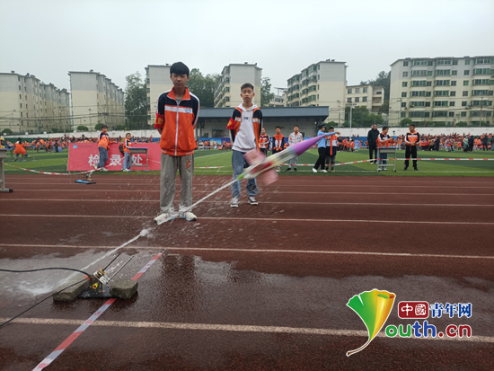 南航23届研支团贵州分队在黎阳学校开展科技嘉年华。图为水火箭与纸飞机比赛现场。庄金成 供图