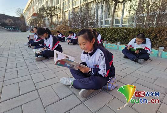 孩子们坐着坐垫读书。青岛科技大学研支团 供图