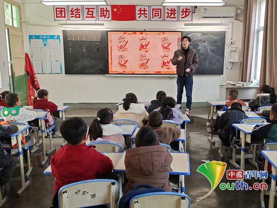 杜志航在甘肃省宕昌县大寨九年制学校为学生上课。杜志航供图