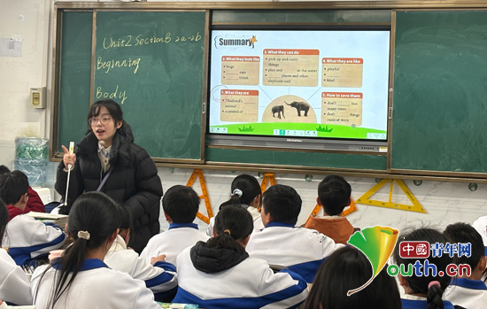 徐丝宇在云南省宣威市榕城初级中学为学生上英语课。徐丝宇供图
