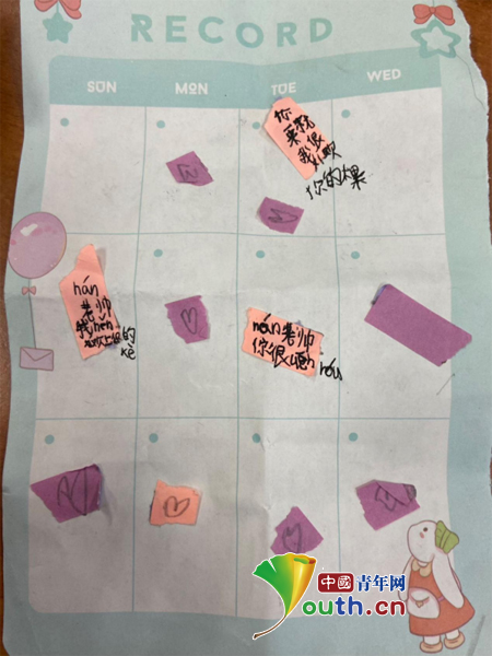 还记得那是一个普通的下午,当我上完课走回办公室的时候,在桌上看到一个小纸条。这是学生写给我的一封短信。她用稚嫩的笔触告诉我,“韩老师,我很喜欢上你的课,不知道为什么,你一来我就很喜欢你的课。”我不能确定这个孩子是否看出了我的自我怀疑和自我否定,也许她只是想要表达和传递自己的心情,但她的这封信,对我产生了一种极大的影响。她轻轻扇动的小小翅膀,在我的心中掀起惊涛巨浪。也许有人会觉得神奇,连我自己也觉得惊讶,那一天、那一瞬间,这简简单单的一句话让我完成了一场自我重塑。那一刻,我突然找到了自信与热情。当我用这种积极的心态去重新审视我的课堂教学时,我才发现,我的学生由于年纪小,难免会有些专注力不高、纪律意识不强,但是在大部分时间,他们都在积极的参与着。因为我始终用心地关怀着他们,他们也能感受到,并且回馈我。我突然意识到,在我没有察觉的时候,我的这朵云也在悄悄地推动着一些云彩。