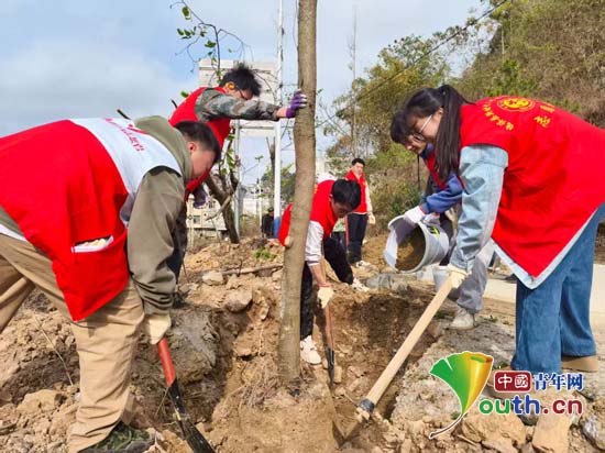 2025年3月,志愿者文显雄在德保县敬德镇参加植树活动。文显雄供图
