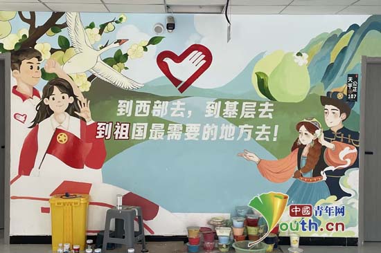 孙鑫琦与志愿者们一起完成的墙绘作品。孙鑫琦供图