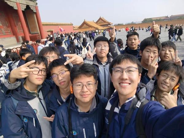 黄俊恺(前排右二)和学生在故宫研学。北京师范大学团委供图