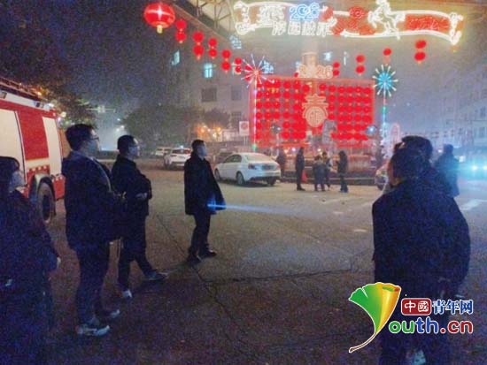 罗钊和同事在街头进行夜间值守。罗钊供图