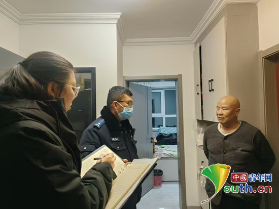 马宇(左)跟着村干部走村入户了解村民的情况。马宇供图