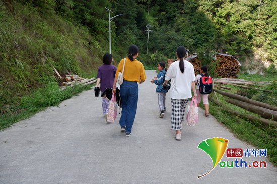 研支团成员在孩子们的带领下走进大山开展家访。南京中医药大学研支团 供图
