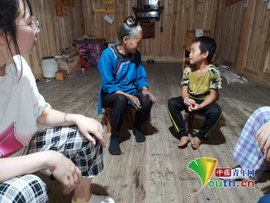 研支团成员与青云奶奶交流,青云做翻译。南京中医药大学研支团 供图