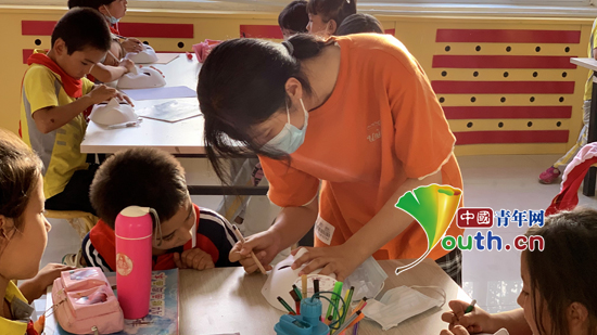 研支团成员原源帮助学生勾勒脸谱线条。河北工业大学研支团 供图