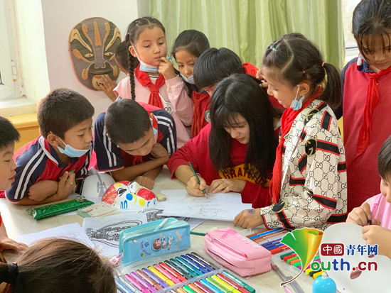 中国青年网北京10月11日电(记者 李彦龙)为促进学生德智体美劳全面发展,培养新时代特色艺术人才,经服务地学校批准,近日,河北工业大学第23届研支团在新疆维吾尔自治区若羌县第三小学开设戏曲文化社团,开展了各式各样的传统文化主题绘画活动。