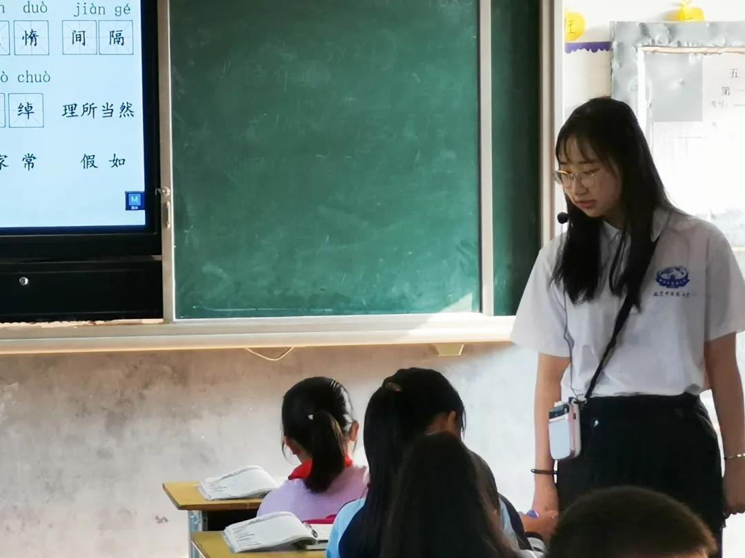 我主要负责五年级语文的教学工作,以及四五年级的美术、音乐等六门课程,兼职少先队辅导员,跟学生们是天天见的熟面孔。在暑期社会实践时,我就曾作为远志服务团支教组的组长,来给这些孩子们上过活动课。那个时候,他们就曾满脸期待地问我,“老师,你之后还会教我们吗”?嘿,我这不就又来啦!