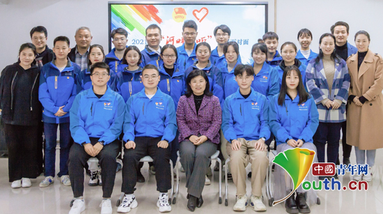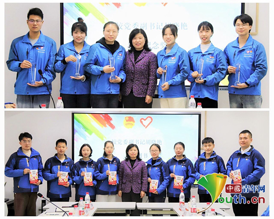 校党委副书记胡晓艳与线下参加座谈的研支团成员合影。湖北工业大学团委 供图