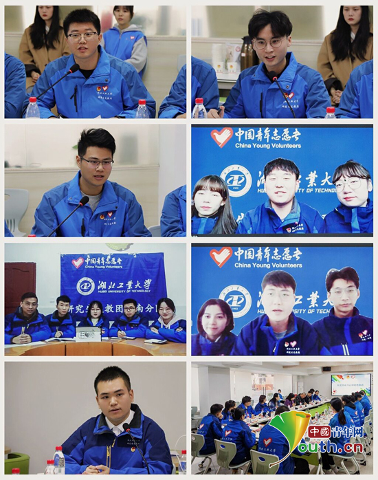 在岗服务的研支团成员在线参加座谈会并分享工作经验。湖北工业大学团委 供图
