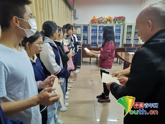 11月26日,西部计划志愿者服务队分别在蒙山中学和县第一中学举办2021年“心守家园”暖冬助学金发放仪式。受助学子们怀着一颗感恩之心写下感谢信,在信中和资助人分享自己学习、生活的点滴日常,字字句句,情真意切,饱含着对资助人的感恩和对生活的热爱。