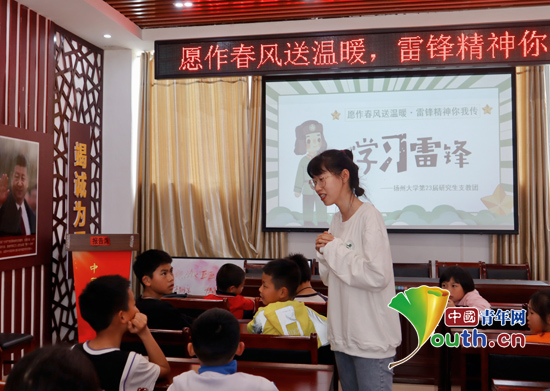 中国青年网北京3月24日电(记者李彦龙)为进一步弘扬雷锋精神,更好践行“奉献、友爱、互助、进步”的志愿精神,激励一代又一代青少年健康成长,近日,扬州大学第23届研究生支教团前往景宁小区开展“愿作春风送温暖,雷锋精神你我传”雷锋月主题活动。