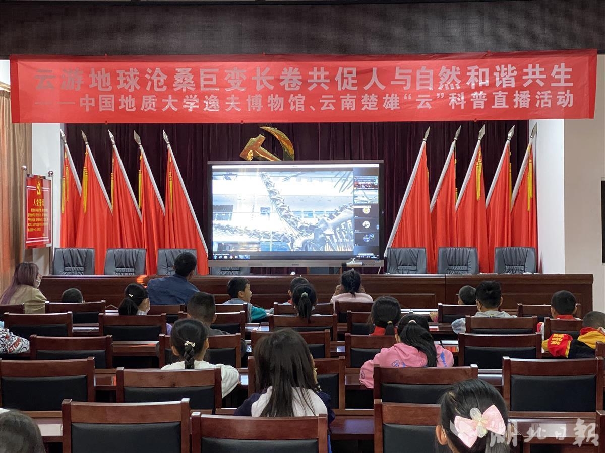湖北日报讯(通讯员徐燕、隋吉祥、陈晶)4月16日,由中国地质大学(武汉)、楚雄州共青团、楚雄市共青团联合主办,中国地质大学逸夫博物馆、中国地质大学(武汉)研究生支教团承办的“云游地球沧桑巨变长卷 共促人与自然和谐共生——中国地质大学逸夫博物馆、云南楚雄云科普直播活动”举行。