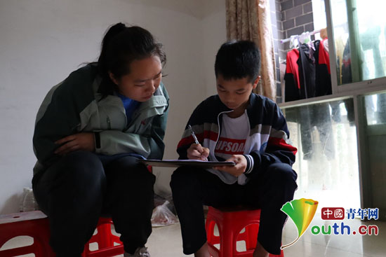 “学校生活怎么样呀,有什么困难吗?”“你最喜欢读什么书?”“多久和爸爸妈妈打一次电话?”“你的梦想是什么?”……在一段段细致入微的聊天里,研支团队员们不断拉近与困难学生的心理距离,屋外雨声潺潺,屋内心意暖暖。