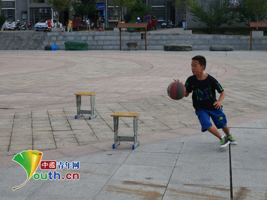 图为小朋友进行“篮球运球”项目比赛。中国青年网通讯员卢凯新供图