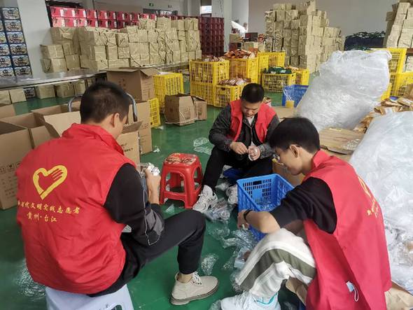 为帮助农村青年致富带头人解决赶急单人手不足问题,带动农产品销售助推乡村振兴事业,11月8日,贵州省台江县台盘乡返乡创业园区贵州方兴科技发展有限责任公司来了一批特殊的“包装工”,他们是由共青团台江县委员会组织的20余名西部计划志愿者。