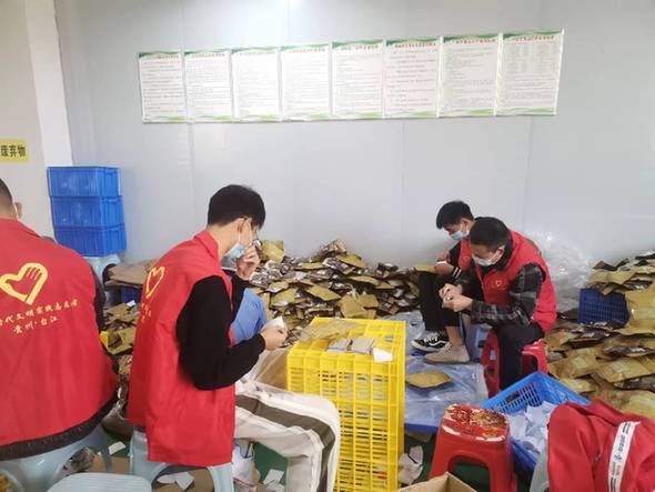 志愿者娄校源说:“今天我们贴了1000包黄花菜包装标贴,包装茶叶500箱,包装银饰赠品1000包,蜂蜜装箱1000罐。虽然感到有点累,但是能切身体验到工厂流水线工人们的不易,据工作人员介绍,这批加急生产的产品是供应年底销售旺季的订单,为减轻疫情带来的压力,我们都出了一份力,我很乐意参加这样的志愿服务。”