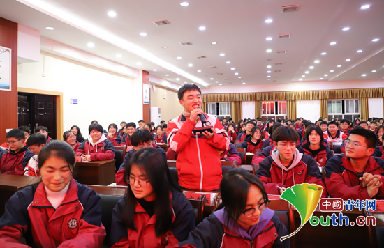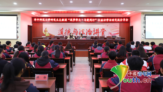 从一名懵懂少年,到入选访学团第一次走向山外,再到逆袭成为文科状元考入华中师范大学,这段“长大后我就成了你”故事,牵动着全场学生的心绪。“学姐,可以分享访学活动给你最深的印象吗”“你见到四月的武汉樱花了吗”“我们也能够考上华师吗”,活动现场,同学们踊跃提问,气氛热烈,曾羽彤和研支团成员耐心解答他们的提问。