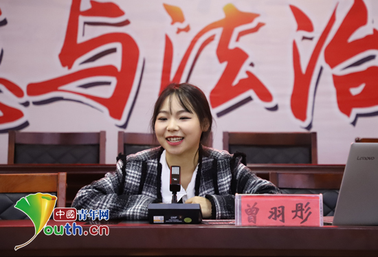 曾羽彤回到母校分享公益访学活动感悟。华中师范大学研究生支教团余庆分队供图