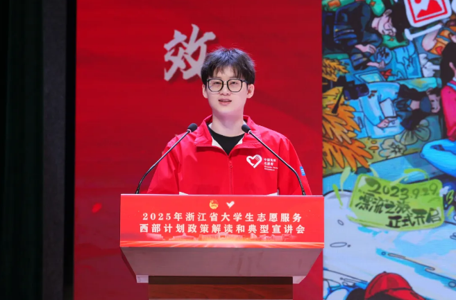 熊峻苓在2025年浙江省大学生志愿服务西部计划政策解读和典型宣讲会上作《建功西部,让青春不负热爱》主题分享。