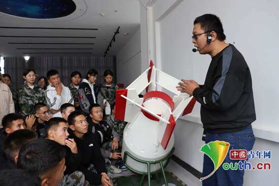 从古代天文仪器到现代航天模型,从传统工艺装置到前沿科创成果,在科技馆,研支团成员以“科技发展脉络”为主线,为学生讲解了科技展品背后的科学原理,以及其在国家发展中发挥的作用。在古代科技展区,研支团成员引导学生从水力机械中感悟古人的创新智慧;在“科创百年”展区,通过解读富蕴本地矿产资源与国家核工业、航天事业的发展关系,让学生深刻理解“科技强国”的内涵,激发他们扎根边疆、建设家乡的责任感。