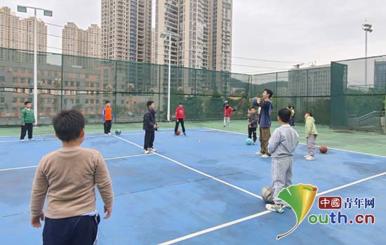 志愿者张明宇指导孩子们打篮球。 中国青年网通讯员姜政帅供图