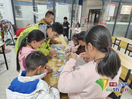 志愿者姜政帅带领孩子们制作香囊。中国青年网通讯员姜政帅供图
