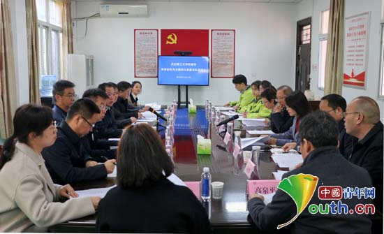 11月13日,武汉理工大学党委书记孟芳兵等一行赴陕西省安康市石泉县,看望慰问该校第27届研究生支教团志愿者,并召开座谈会。图为座谈会现场。中国青年网通讯员刘宇洲供图