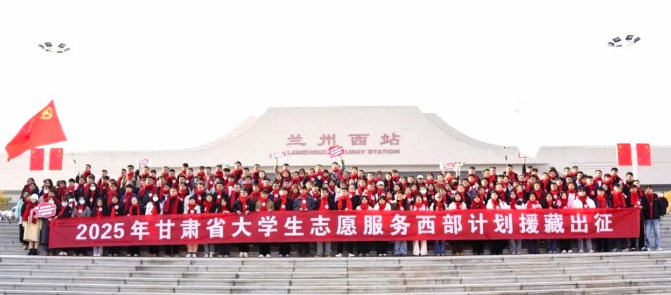11月16日清晨,甘肃省西部计划赴西藏服务志愿者在兰州出征。来自甘肃省各地的西部计划志愿者精神抖擞集结列队,一条条鲜红的围巾如火焰般跳动,驱散了初冬的凉意,胸前的青年志愿者徽章在晨光下格外鲜亮,勾勒出青春最动人的模样。他们即将登上开往雪域高原的列车,让这抹带着陇原暖意的“志愿红”,在世界屋脊绽放光彩。