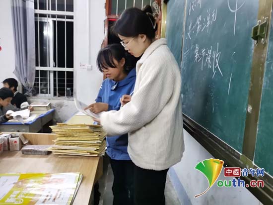 第24届研支团成员颜奕桐在辅导学生功课。桂林电子科技大学研支团供图