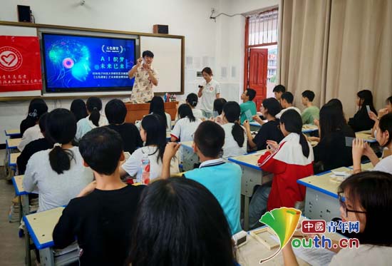 研支团成员开讲“五色课堂”为学生科普AI知识。桂林电子科技大学研支团供图