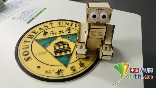 图为孩子们组装的声控机器人模型。东南大学研支团供图
