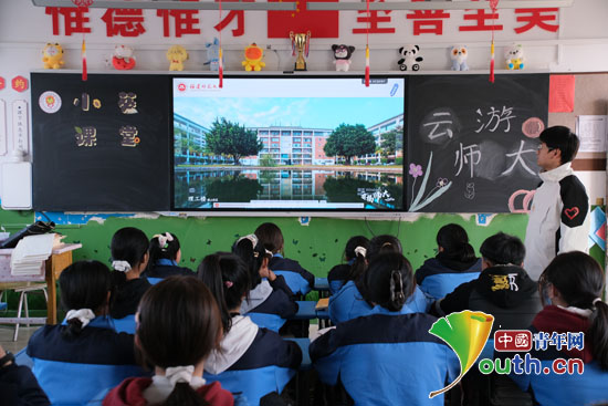 在“云游师大”活动中,福建师范大学第28届研究生支教团成员依托旗山、仓山校区的精美卡通地图和宣传视频《有福师大》,在线展示了福建师范大学的风景地标、科研实力与高校学子的衣食住行,将师大的文化精神生动呈现在西部孩子面前,在他们心中播下对大学生活向往的种子。
